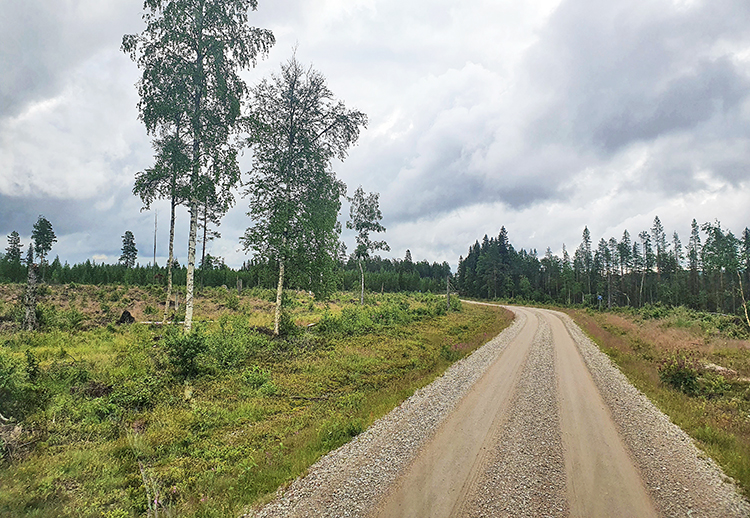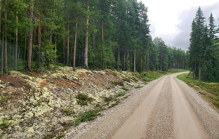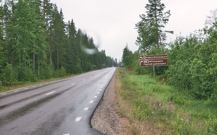 Vom Kaffee wieder auf Touren gebracht, folgen wir weiter der scheinbar endlosen Schotterpiste. Wenn wir uns recht erinnern, hat der Spuk erst bei Hede ein Ende. Bis dort hin sind wir dann ca. 40 km auf der Piste unterwegs, das brauchen wir eigentlich nur, wenn es etwas ganz Besonderes zu sehen gibt. In Hede erreichen wir die Straße 84. Wir fliegen an der Zufahrt zum Sonfjället vorbei und bewegen uns nun ohne größere Pausen recht flott in Richtung Hamra Nationalpark.
