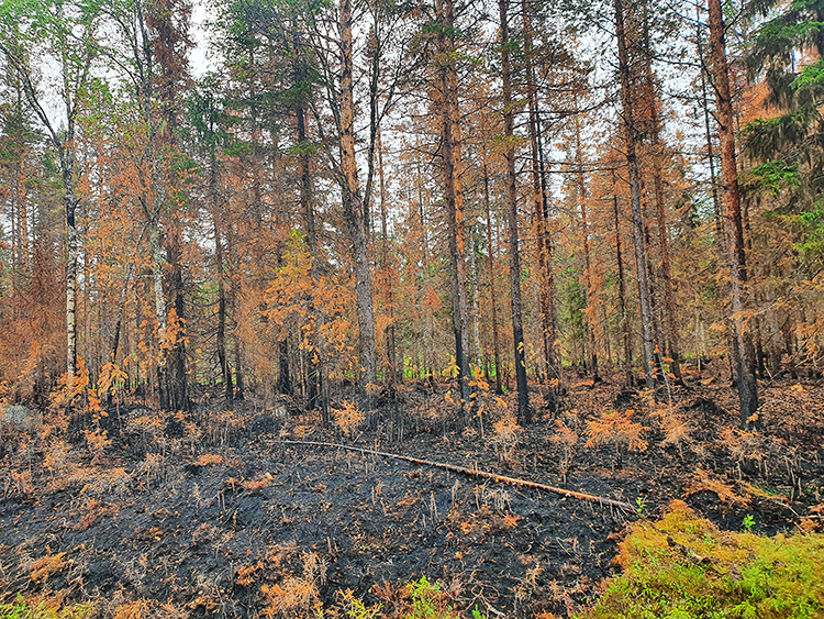 Im Sommer scheint es hier gelegentlich auch mal recht heiß und trocken werden zu können. Darauf deuten zumindest die Brandspuren entlang der Zuwegung zum Haupteingang hin.