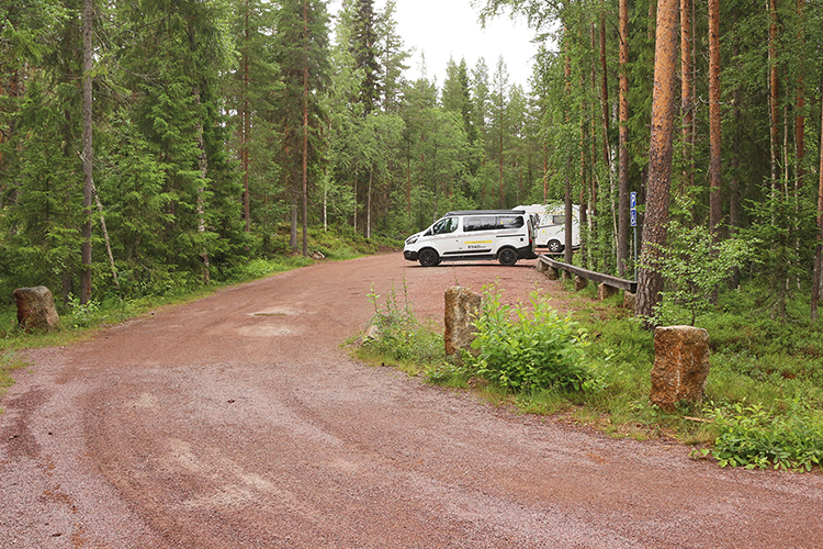 Von der E 45 sind es nur 5 km bis zum Haupteingang, der größte Teil davon allerdings wieder als Schotterpiste ausgehalten. Wegen der Nähe zur Europastraße 45, die ja häufig auf dem Weg der Nordlandfahrer liegt, bietet sich Hamra geradezu an, um diesem Nationalpark einen Besuch abzustatten ohne von den zwei oder drei schönsten Wochen des Jahres zuviel kostbare Zeit abgeben zu müssen. Auch wer nicht so gut zu Fuß ist, wird hier bestens bedient.