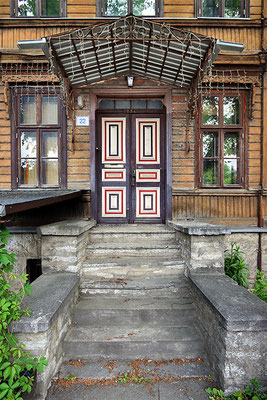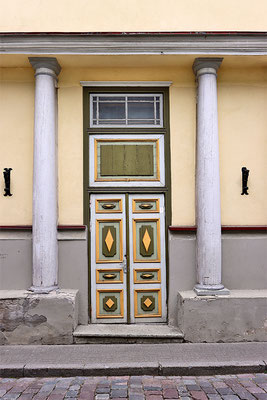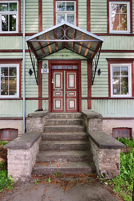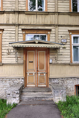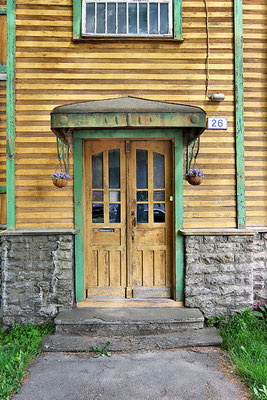 So kommt die Idee auf, wenn wir schon die Häuser nicht fotografieren können, zumindest die schönsten Eingangsportale aufzunehmen und hier zu dokumentieren. Die Idee haben wir dann im Rest der Stadt weiterverfolgt. Deshalb sind nicht alle obigen Portale aus der Siedlung Kalamaja, und wie man unschwer erkennen kann, führen auch nicht alle hölzernen Portale in hölzerne Gebäude.