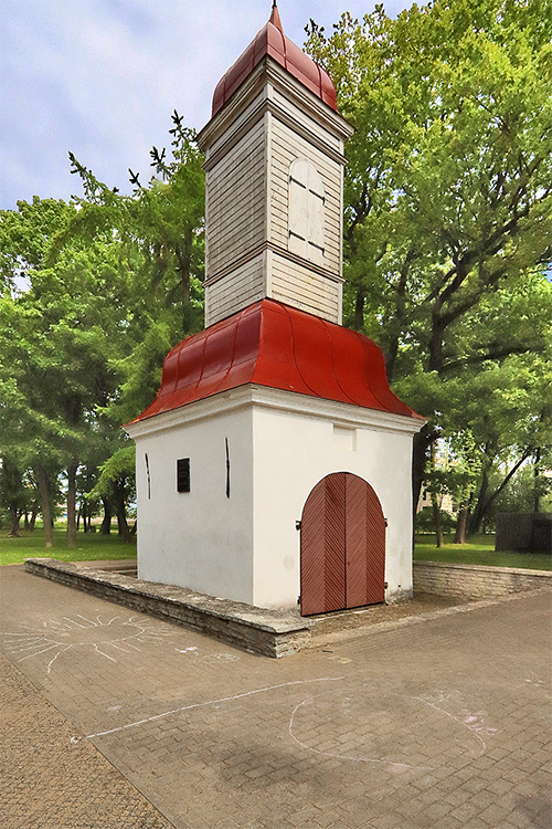 Dabei kommen wir an diesem hübschen Gebäude, dem Tor-Glockenturm des Kalamaja-Friedhofs