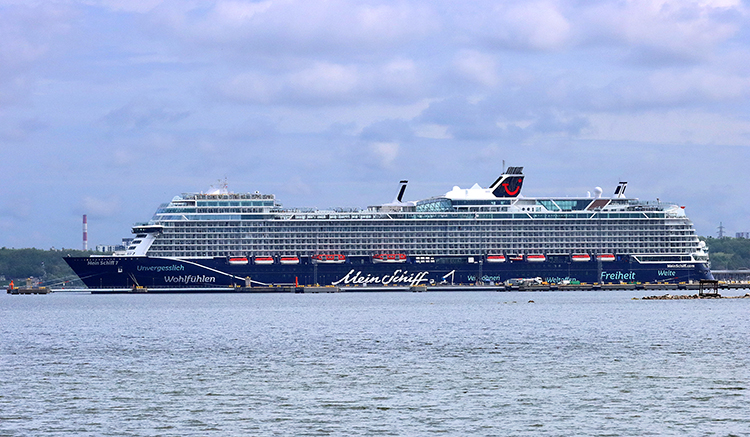 Unweit des Terminals sehen wir, dass die Mein Schiff 1 in einem benachbarten Hafenbecken liegt. Da die Altstadt von Tallinn nicht allzu groß ist und die Kreuzfahrttouristen sich meist in diesem Bezirk aufhalten, werden wir das bestimmt merken.