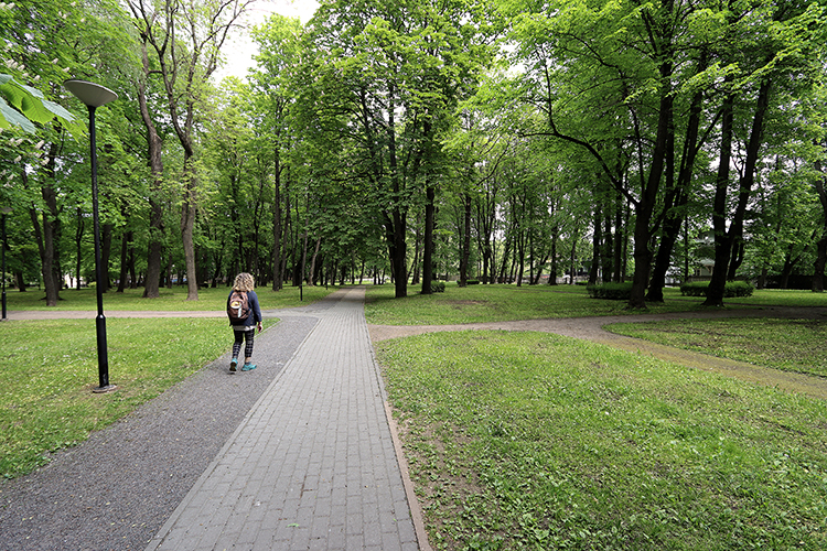 Die Straßenbahntrasse folgt der Kopli Straße nach Westen. Wir laufen bis zur Volta tänav vor und biegen dann nach Nordwesten ab, wo wir nach 500 Metern auf den Kalamaja Cemetery Park (Kalamaja kalmistupark bzw. Friedhofspark) treffen.