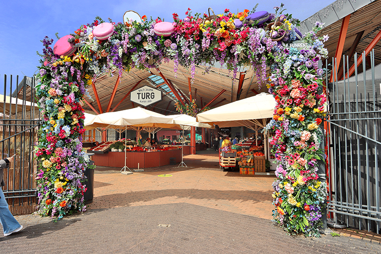 Ausstellungsflächen in der Halle nicht ausreichen, gibt es auch einen Außenbereich, in dem vor allem Obst und Gemüse verkauft werden.