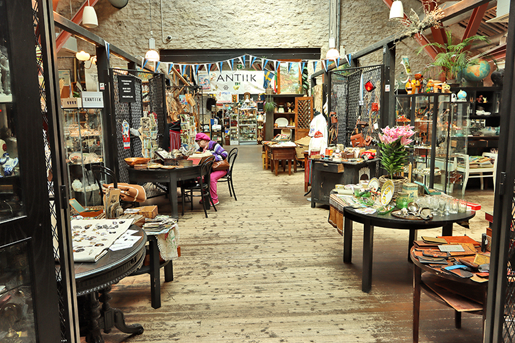 Im ersten Stock werden estnisches Design und estnische Handarbeit, Kleidung, Haushaltswaren und Antiquitäten, aber auch viel Nippes, also Dinge, die man nicht wirklich braucht, aber gerne haben möchte, angeboten.