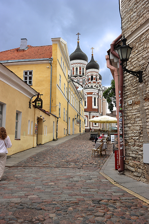 Blick nach Süden die Piiskopi tänav hinunter in Richtung Alexander-Newski-Kathedrale, dem Prunkstück der Sakralbauten in Tallinn. Michael ärgert sich immer wieder, wenn solche Gebäude im Laufe der Geschichte abgerissen wurden, nur weil sich eine neue Glaubensrichtung etablierte.