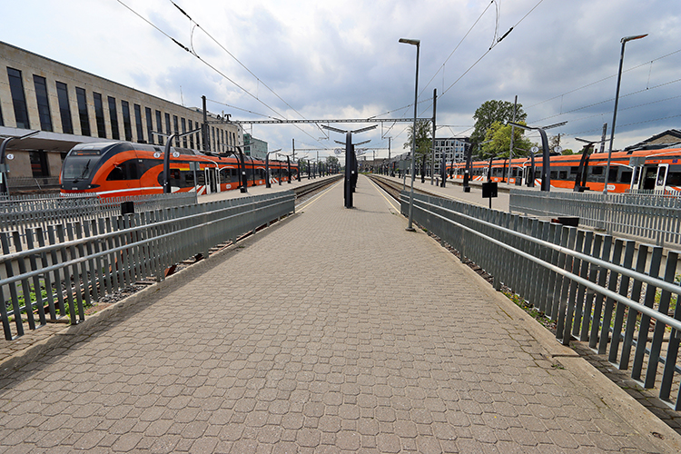 Von unserem ersten Übernachtungsplatz an der Markthalle laufen wir hinüber zum Kopfbahnhof und sehen uns dabei auch einmal die Triebwagen der estnischen Eisenbahnen an. Estland setzt offenbar wie die Nachbarn auf Bustransporte, denn für einen Hauptbahnhof einer Großstadt ist die Frequenz, mit der hier Züge ein- und ausfahren, nicht allzu hoch.