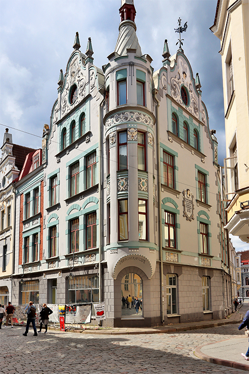 Das Reichmann-Haus. Das dreistöckige Jugendstilgebäude wurde 1908–1909 erbaut. Architekt war Jacques Rosenbaum, Ingenieur war Ernst Boustedt. Das Gebäude gehörte Reinhold Reichmann und später der Familie Schein. Die Fassade des Gebäudes ist mit üppigen Giebeln im Neorenaissance-Stil verziert, die von niederländischen und norddeutschen Vorbildern inspiriert sind. An der Ecke Pikk tänav und Voorimehe tänav befindet sich ein schlanker, runder Turm, der über das Gebäude hinausragt.