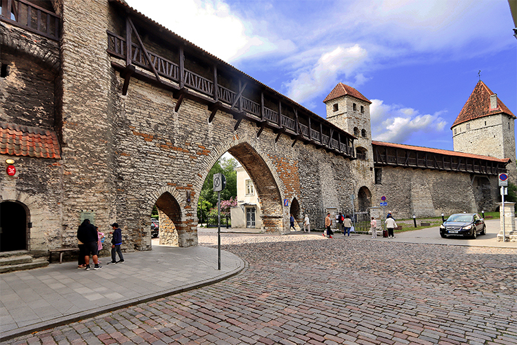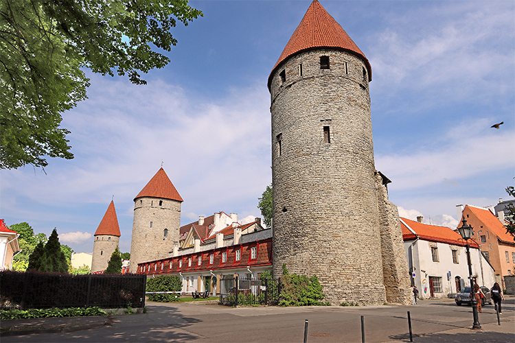 Hier ein weiterer Teil der Stadtmauer, der sich etwa 250 m südwestlich des Plate-Turms an der Suur-Kloostri-tänav befindet. Die Tallinner Stadtmauer ist eine der wichtigsten Sehenswürdigkeiten der Stadt. Sie verleiht Tallinn noch immer einen mittelalterlichen Touch. Und die Stadtoberen sind sich dieser Tatsache durchaus bewusst, denn sie hegen und pflegen dieses pittoreske historische Erbe.