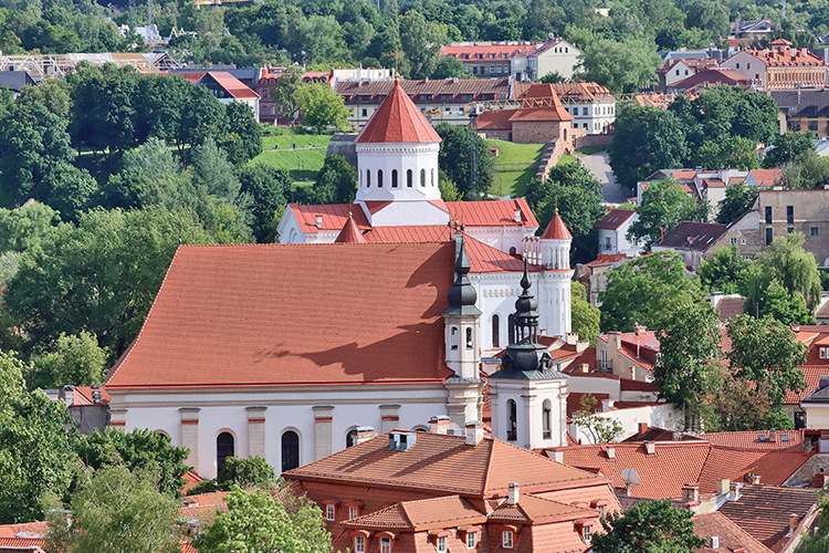 Die Kathedrale der Himmelfahrt der Gottesmutter vom Gediminas-Hügel aus mit dem Teleobjektiv aufgenommen.