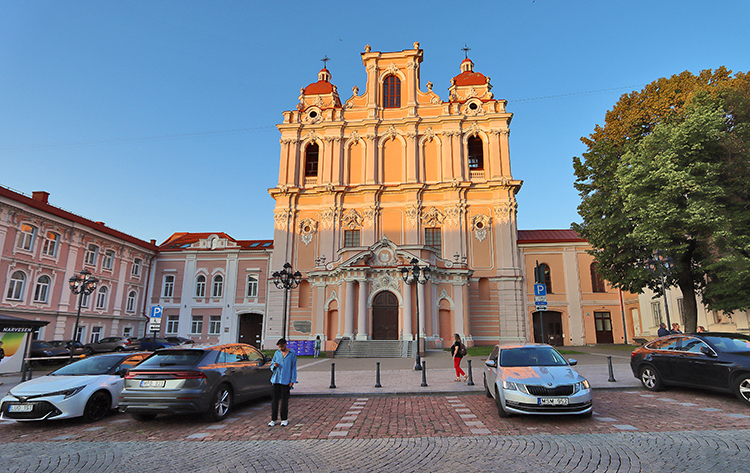 Westlich des Stadtteils Užupis bzw. des Flusses Vilnia befindet sich die größte Kirchendichte der Hauptstadt. Gewöhnliche Touristen wie wir verlieren hier rasch den Überblick bei der Vielzahl der sakralen Bauten. Dicht an dicht stehen gut 50 Kirchen allein im Stadtzentrum, gotisch, barock, katholisch, orthodox, viele davon kulturhistorisch bedeutend.
